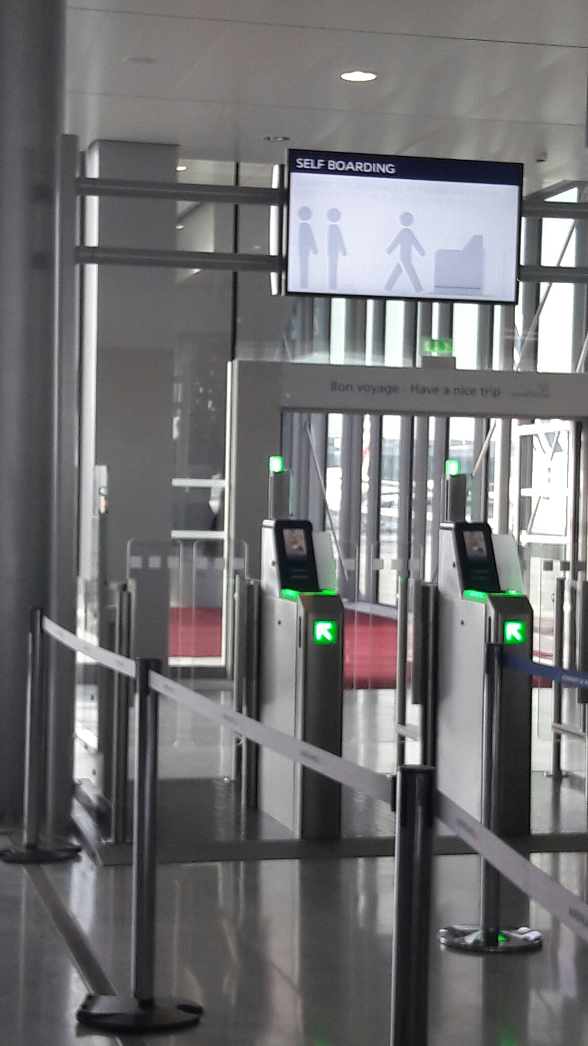 Idem pour monter dans l’avion, nous avons le self boarding pour scanner nos cartes d’embarquement.