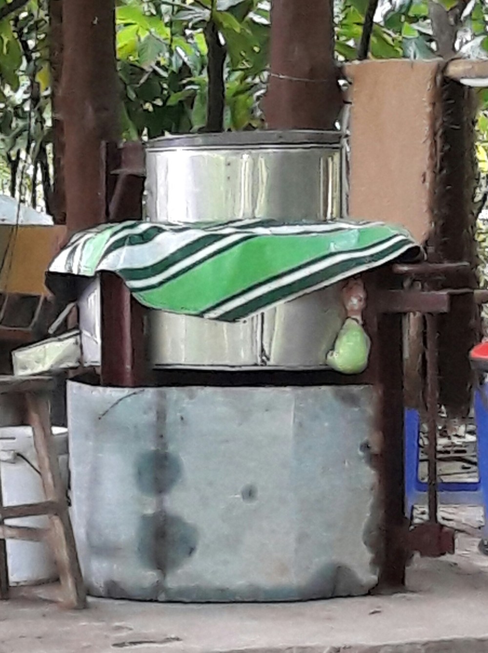 Malgré la commercialisation de ses produits à des firmes internationales et son hectare de cacaoyer, il a gardé des méthodes artisanales et une culture biologique. Ce sont ces méthodes qu’il nous fait découvrir à travers des machines qu’il a conçu lui-même.