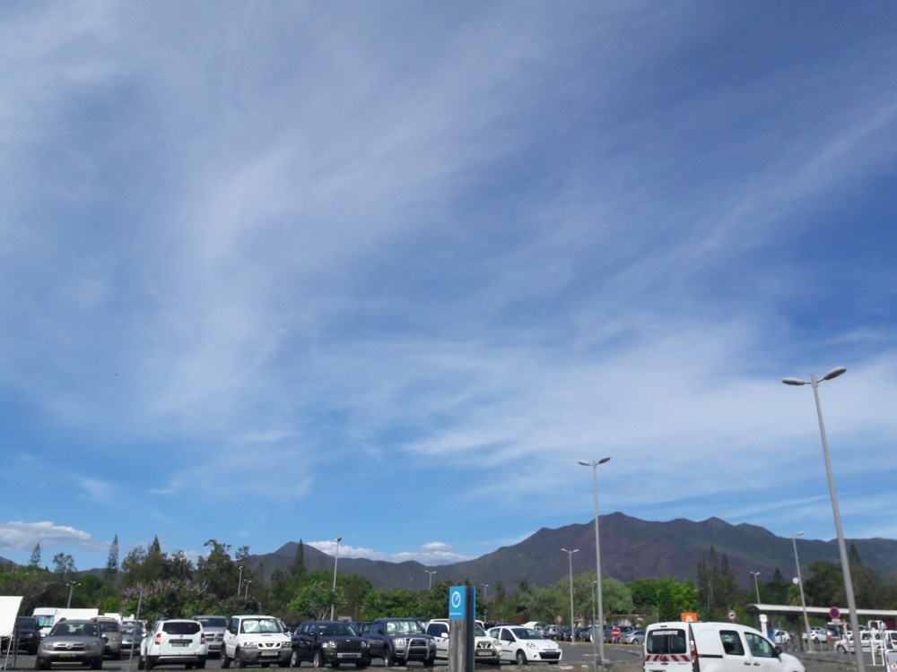Magnifique ciel bleu et un bon 33°C sec dès que l’on prend la passerelle de l’aéroport de Tontouta.