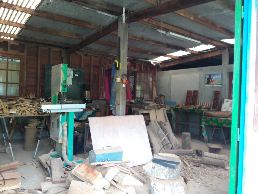 Dick est l’un d’entre eux. Il travaille aussi bien les petites pièces que les flèches faîtières monumentales. Il nous a présenté son atelier et ses œuvres qu’il a bien voulu signer, dubitatif: